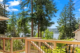 Tucked away in a quiet Gig Harbor neighborhood, this home offers stunning sunsets over the Sound. The upper floor features an open plan with living, dining, and kitchen, a primary suite with attached bath, and two additional bedrooms. Downstairs has a spacious family room, a full bath, and laundry. Refreshed in 2017 with a new roof, flooring, and vinyl windows, the highlight is the 360 sq ft Trex deck, perfect for relaxing and enjoying the views! Recent updates include a water filtration system, electrical panel, new driveway, hot tub, and tree removal for sunny days. The dialed-in yard provides room to play and roam, and the attached garage is extra roomy. Enjoy neighborhood strolls or quick access to amenities, shopping, and HWY 16.