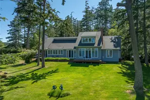 Experience the perfect blend of New England elegance and Pacific NW beauty in this rare San Juan Islands waterfront estate. Set on 1.6 private acres with 209 ft of shoreline, the home showcases sweeping Mt. Baker and Salish Sea views--watch ferries, orcas and eagles from your deck. French doors open to sunlit gardens & lawns, ideal for entertaining. Inside, a grand living room with Rumford fireplace, formal dining & bright kitchen/family room with oak floors create timeless appeal. The luxurious primary suite boasts a spa-like bath & oversized walk-in closet, plus two guest rooms, den & 2-car garage. A property of unmatched setting, style and serenity.
