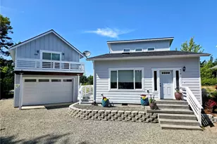 This stunning 2-bedroom, 3-bathroom residence boasts main-level living, enhanced by hickory hardwood floors & elegant ceramic tile. Enjoy the beauty of vaulted ceilings upstairs & down; with new carpet installed upstairs 06/25. The modern kitchen features a magnificent quartz countertop & backsplash, a skylight & top-of-the-line appliances from 22/23. Stay comfortable year-round with heat & air conditioning. Outside; there is a large fully-finished & insulated 2-car garage with a sealed floor & a beautiful/modern ADU above. Electric Blinds, Non-Combustible Siding, 30 YR. Comp Roof, Full Size Appliances in ADU, Low-Maintenance Landscaping, Reinforced Flooring Joists, etc. No luxury spared in this turn-key Port Townsend home. Zoned R-III (MF)