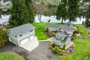 Miller Bay Oasis (as seen on HGTV) no/low bank waterfront Craftsman complete w/boat ramp & dock! The main level primary suite has a cozy fireplace, a soaking tub, and a walk-in closet + washer/dryer hook ups. The spacious waterfront great room is ideal for hosting gatherings, filled with abundant natural light. To add charm & warmth, the formal dining room & finished basement have fireplaces. There's parking for 6 vehicles in the garages/workshops. Above the garage, an 1100sqft +/- conference room with 2 offices, kitchen, bathroom & balcony. This 3+ acre property offers a tranquil lifestyle with a scenic private driveway. Enjoy nature as you watch eagles soar while kayaking in your front yard. Close to town, casinos, and ferries!