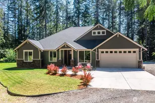 Discover modern comfort in this stunning Craftsman-style home, nestled on 7 peaceful acres. Concrete floors, vaulted ceilings, and a striking floor-to-ceiling stone fireplace, this home blends rustic elegance with contemporary design. The open-concept layout is perfect for entertaining, anchored by a commercial-grade kitchen range that will delight any chef. Host gatherings on the expansive covered patio, surrounded by nature and serenity. With ample parking and seamless indoor-outdoor flow, it's an entertainer's dream. Whether you're seeking a quiet retreat or a vibrant space to welcome guests, this home offers the best of both worlds - privacy, beauty, and functionality. Yelm schools! Restaurants and shopping just a few miles away.