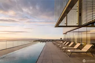 First Light, designed by architect James KM Cheng and glass artist John Hogan is Westbank's latest residential tower in Downtown Seattle. This Northwest Urban 1 Bedroom Home offers an open, efficient layout, with a spacious balcony and one full bathroom. Floor-to-ceiling, triple-paned windows allow for spectacular views of Elliot Bay, and the Olympic Mountains. Each home features custom-designed interiors by the architect and includes custom B&B Italia cabinetry, light finishes with contrasting details, Kohler fixtures, Miele appliances, keyless entry and hardwoods throughout. Amenities include a 47th floor 25-meter rooftop sky pool & jacuzzies, a rooftop garden, fitness & wellness center, bike lounge, pet play area, spa & resident's lounge