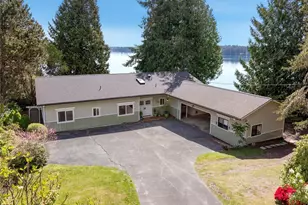 Enjoy stunning views of Mt. Rainier and Totten Inlet from this serene 3BD/1.75BA, 1,751 sq ft high-bank waterfront home. Vaulted, open-beamed ceilings, hardwood floors, and a cozy fireplace accent the light-filled interior. The updated open kitchen and sunroom, enter with antique glass doors which overlook terraced, mature landscaping. Relax on the deck or stroll down private steps to 146' of waterfront with tideland rights-grow oysters/clams or lease for income. The yard features espaliered apple trees, pears, fig, blueberry, evergreens, rhododendrons, azaleas, hydrangeas, a waterfall feature w/ goldfish pond. Includes 240 sq ft shop, RV pad, covered parking, and 30-yr roof with R-49 insulation.