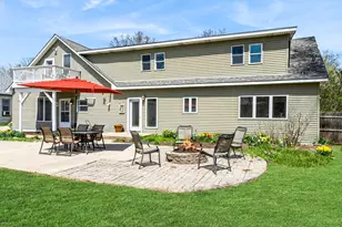 This beautiful one-and-a-half story home offers three bedrooms, two bathrooms, and 2,963 square feet of thoughtfully designed living space. Nestled on a lot that backs up to tranquil views of Bassett Creek, mature woods, and two-thirds of an acre of landlocked open space owned by Kenosha County, the setting is both peaceful and private. Upon entering, you're welcomed by an open-concept floor plan with a family room on one side of the kitchen and a dining room on the other-creating an ideal space for entertaining. The kitchen is appointed with rich cherry cabinetry, sleek black granite countertops, stainless steel appliances, an island, and a walk-in pantry. The family room features large windows on both sides, filling the space with natural light. Off the family room is a cozy den, perfect for a home office, which flows into a spacious 21x13 living room-ideal as a media room or home theater. The laundry room includes a stackable washer and dryer, utility sink, and convenient access to the outdoors. The adjacent exercise room can serve as an additional office or provide extra storage space. Full bathrooms on both levels feature ceramic tile flooring. Upstairs, the expansive primary bedroom includes access to a private balcony, while two additional bedrooms are located down the hall. Outside, a patio and fire pit make the backyard an inviting space for entertaining and enjoying the serene views.