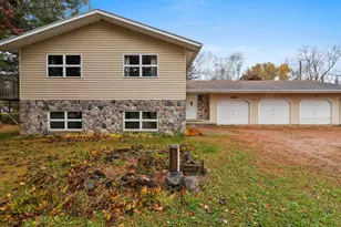 Enjoy the tranquility of the Embarrass River in your backyard with a walking bridge crossing to get the back of the property. This is a bilevel 3 bedroom, 1 1/2 bath home with main level laundry, spacious living room, kitchen/dining with patio door to deck, lower level family room with wood burning fireplace and large 3 stall garage. Carpeting has been removed in an upper level bedroom.