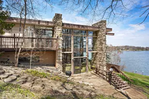 This stunning lakefront property boasts an incredible lot size of 1.15 acres & 130' of spring-fed Rock Lake frontage with unparalleled potential. In 1972, a Mid-Century Modern & Prairie-style addition was designed by the renowned architect Helmut Ajango. Timeless elements of stone, wood, 2 story glass & copper make this a rare opportunity to create the grandest residence on the lake. The wellness wing, featuring an endless pool, is surrounded by ample space w/heated floors for exercise equipment plus a 5 person Sauna, making it the ultimate Spa-Lake retreat experience. The large primary bedroom suite has sweeping lake views & a private patio. This Lake opportunity is a short escape from Milwaukee, Chicago & only 25 min from Madison. Ready for immediate Lake experiences.